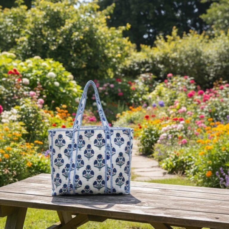 Blue Printed Quilted Tote Bag without zip/button 17x18x 6 inches