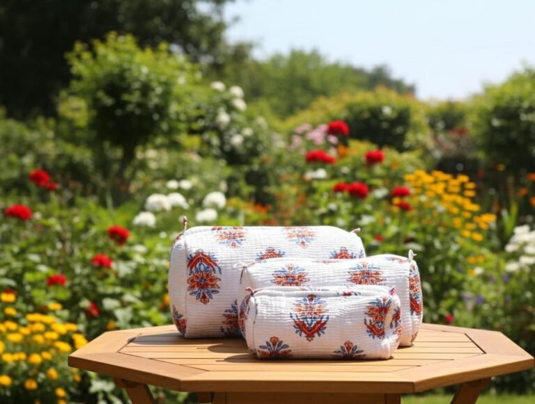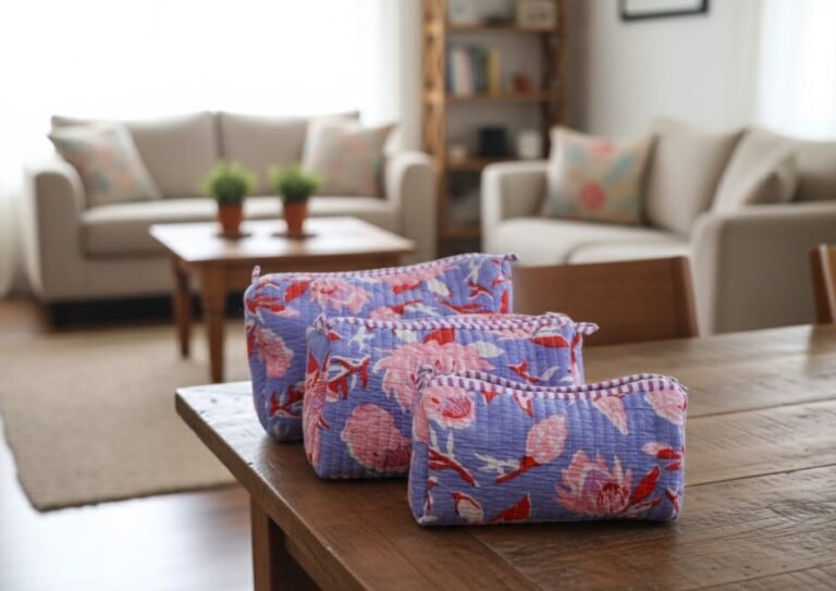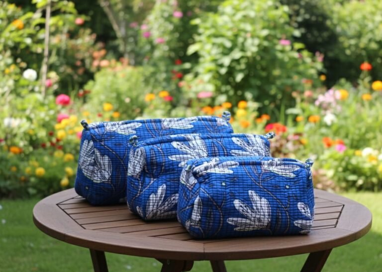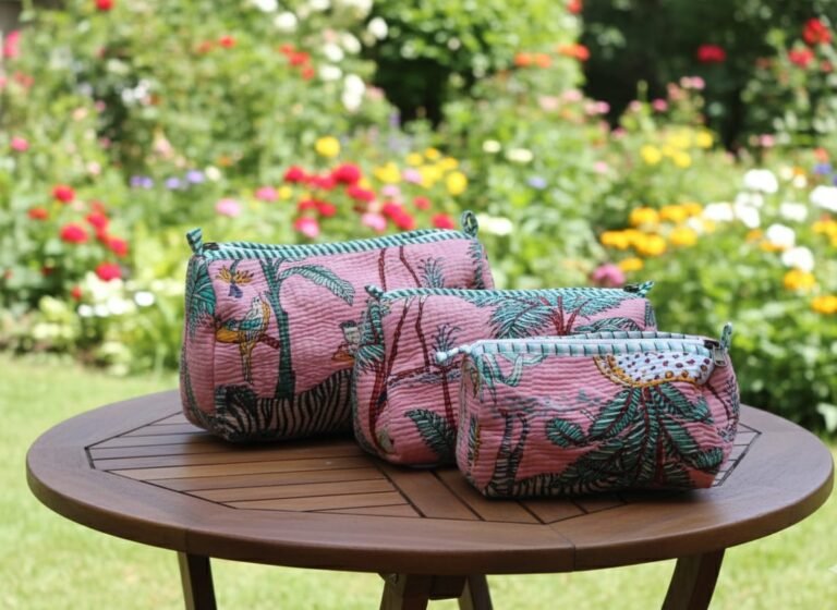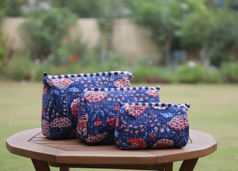 Cotton Quilted Pouches – Set of 3 with Waterproof Inner Lining