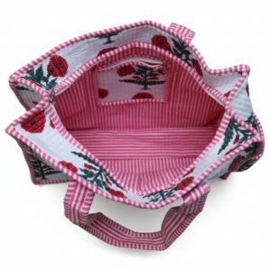 Add a touch of elegance to your day with our Pink Butta Flowers Tote Bag, crafted in soft quilted cotton