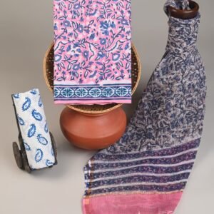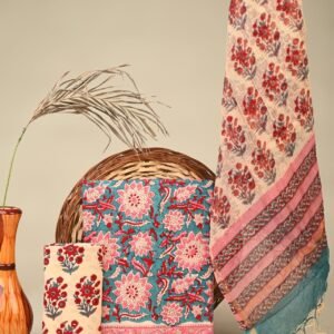 Unstitched Hand block Cotton Suit with Kota Dori Dupatta