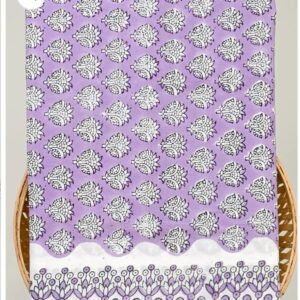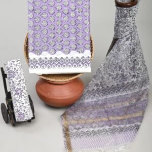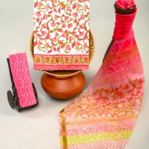 Unstitched Hand block Cotton Suit with Organza Dupatta