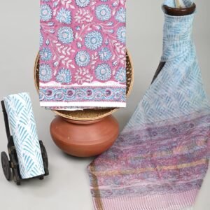 Unstitched Hand block Cotton Suit with Cotton Dupatta