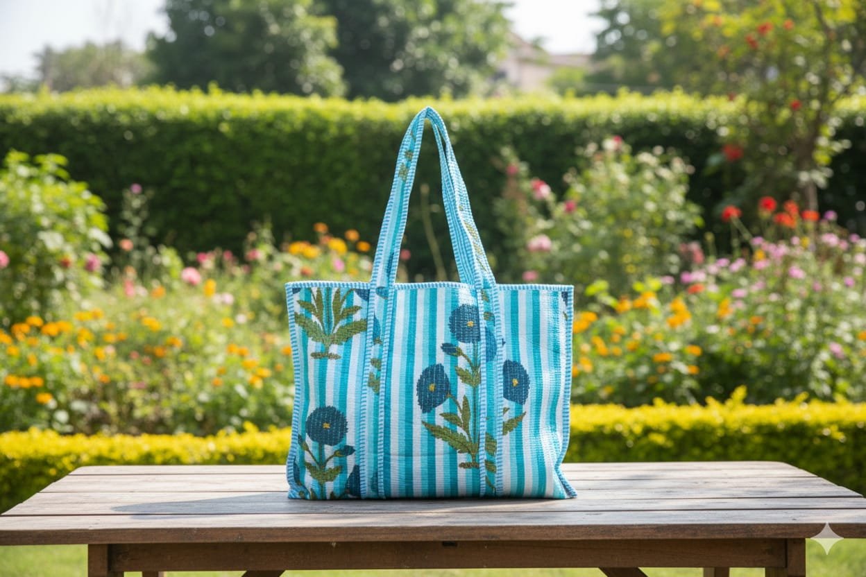 Carry effortless style and comfort with our Quilted Cotton Tote Bag, thoughtfully handcrafted for everyday use. Made from soft, premium cotton with fine quilting, this tote offers a lightweight yet durable feel. The spacious interior and sturdy handles make it perfect for daily errands, casual outings, and travel. Its open-top, zip-less design ensures easy access to your essentials.