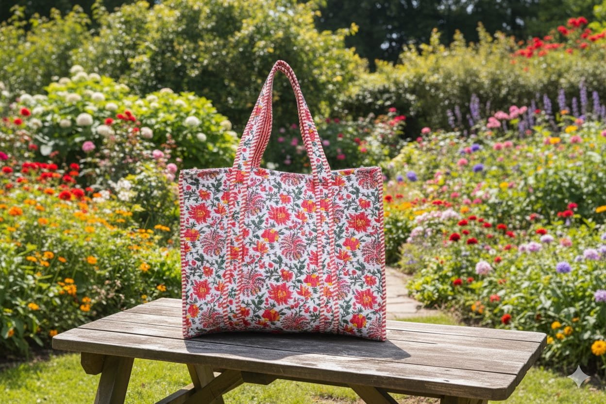 Carry effortless style and comfort with our Quilted Cotton Tote Bag, thoughtfully handcrafted for everyday use. Made from soft, premium cotton with fine quilting, this tote offers a lightweight yet durable feel. The spacious interior and sturdy handles make it perfect for daily errands, casual outings, and travel. Its open-top, zip-less design ensures easy access to your essentials.