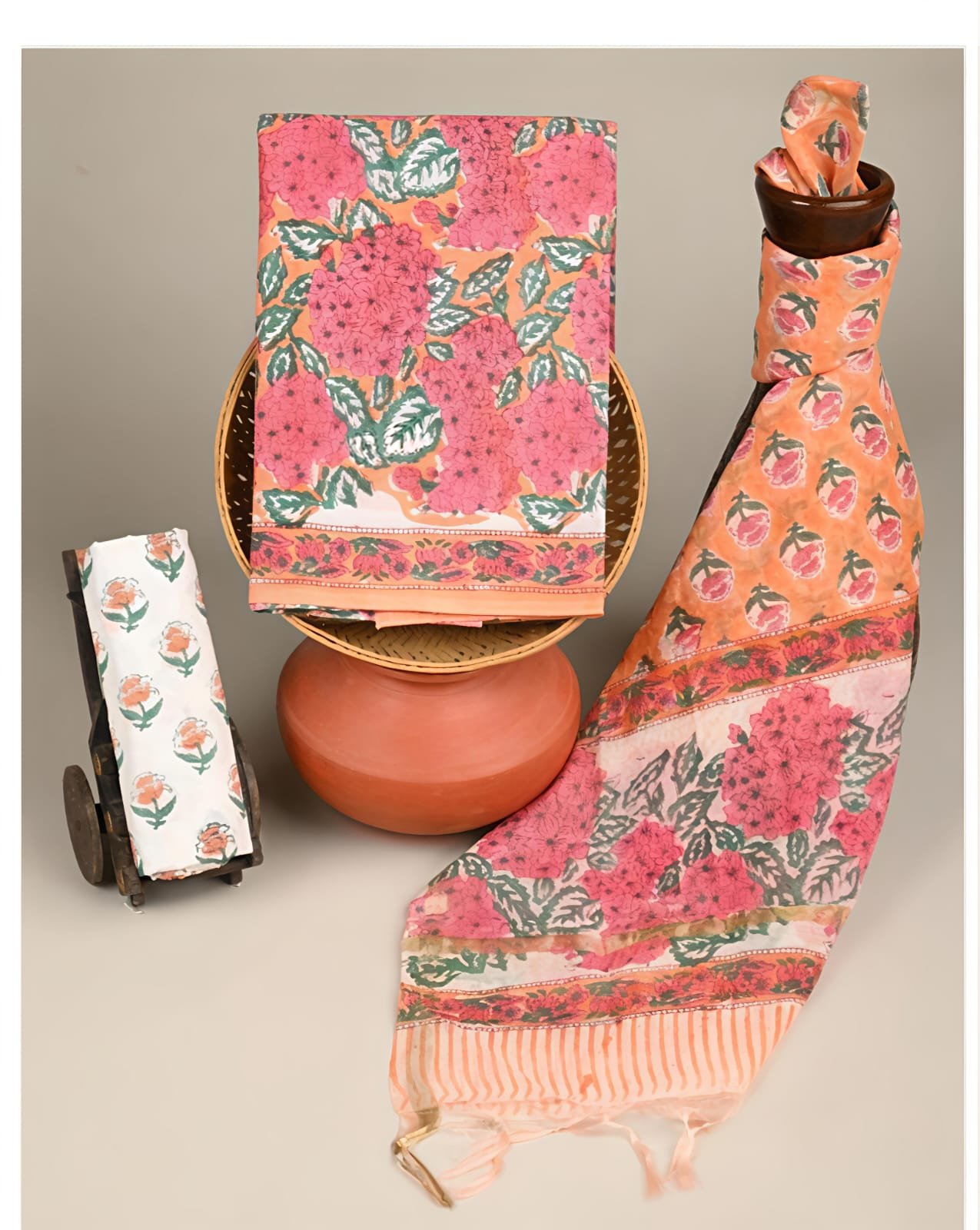 • ⁠Cotton Hand Block Print Suit with Chanderi Dupatta