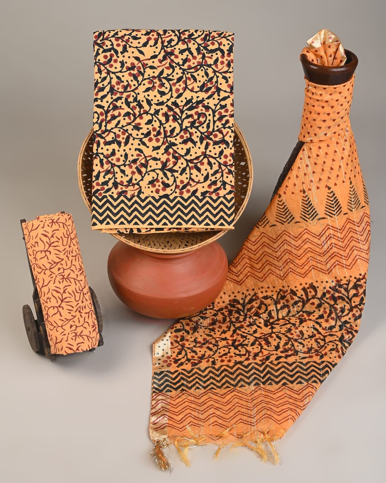 A Pretty CHANDERI DUPATTA COTTON SUIT To wear At Parties, Functions or Just Casually Which Is Stylish & comfortable To Wear for Women or This Suit and You Will Be a Fashion Statement Every Time with Brand of India Krafts. Beautifully handcrafted in the artisan lanes of Sanganer, Jaipur.