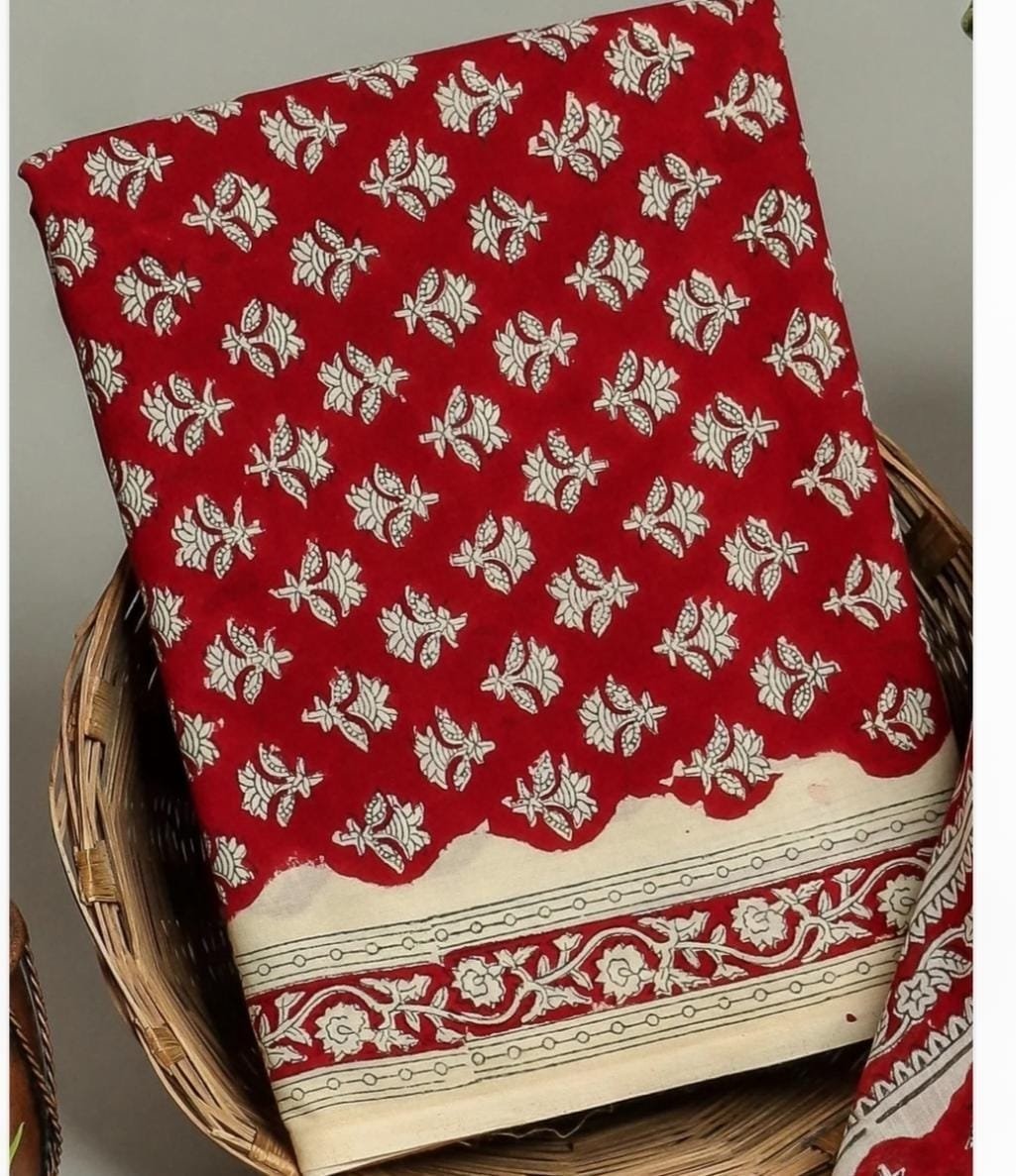 Home Unstitched Suits Cotton Hand Block Print Suit with Cotton Dupatta Unstitched Hand block Cotton Suit with Cotton Dupatta